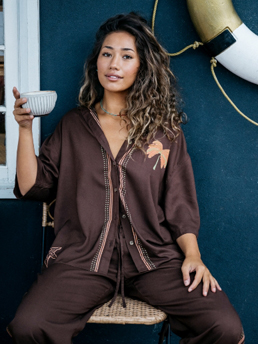 Vacay Mode Button-Down Shirt in Teak