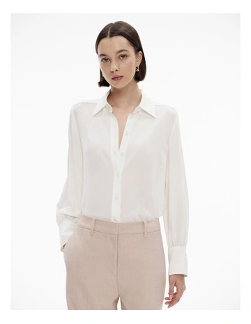 Witchery Silk Bind Detail Shirt in Chalk