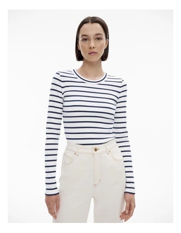 Stripe Long Sleeve Rib Top in Ink