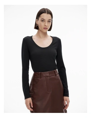 Witchery Cotton Long Sleeve Rib Top in Black