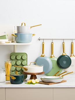- Invest in a quality cookware set, including a saucepan, frypan, colander and baking dish, which can also be colour-coordinated with other kitchenware.