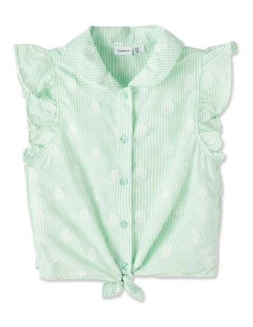 Name It Fidot Spotted Frill Top in Green Ash