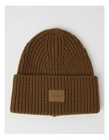 Kenji Turn Up Beanie with Rubber Patch in Brown