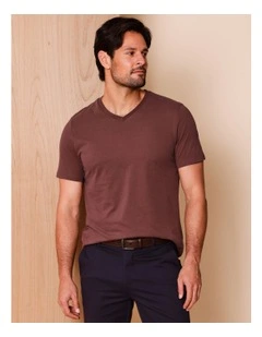Essential Victor Plain V-Neck T-Shirt in Chocolate
