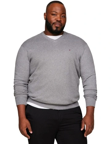 Tommy Hilfiger Big & Tall Pima Organic Cotton Cashmere V-Neck Knit in Medium Grey Heather
