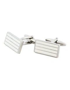 Polished Rhodium Stripe Mother Of Pearl Cufflinks in Silver