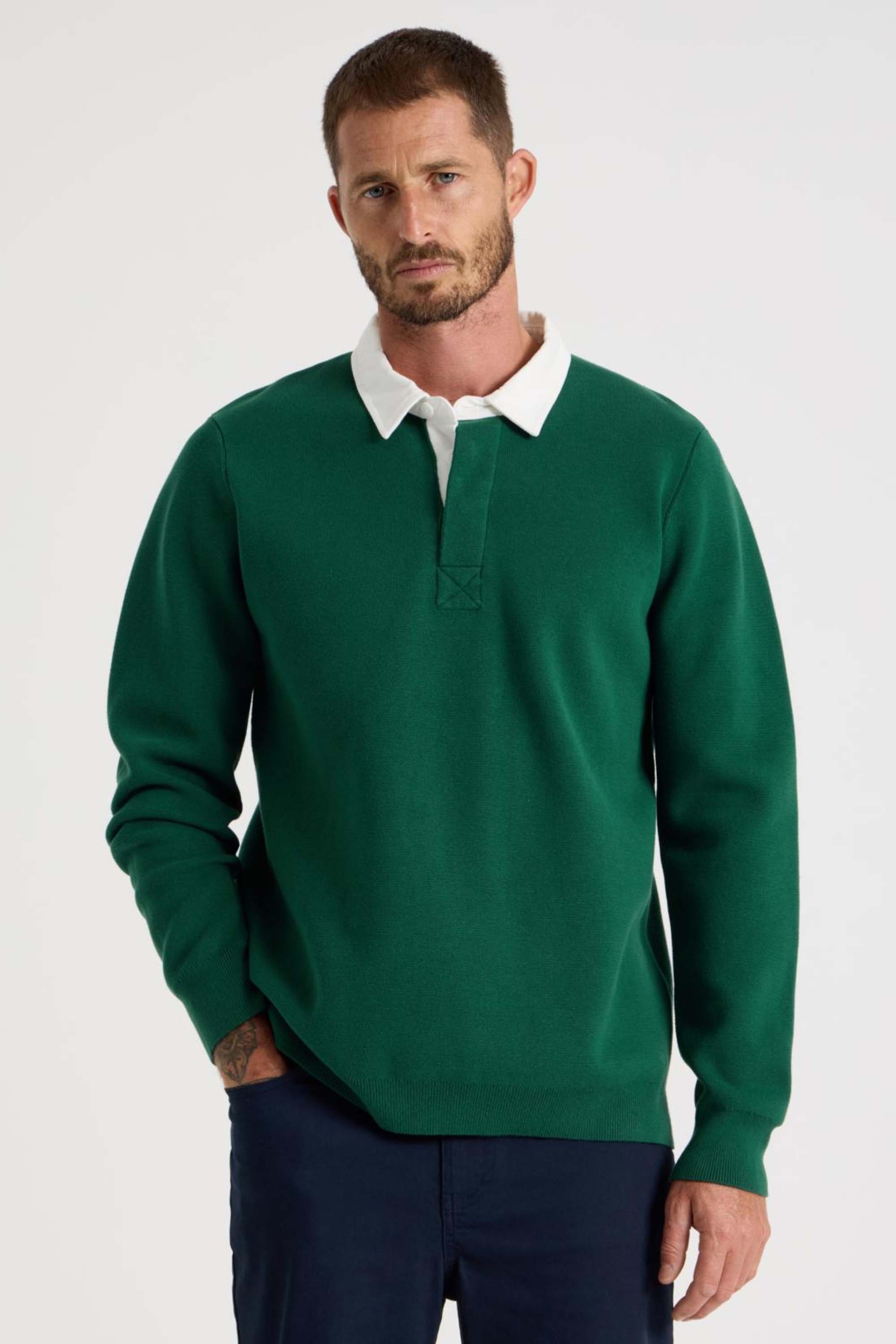 Contrast Pique Polo Shirt in Yellow Lichen