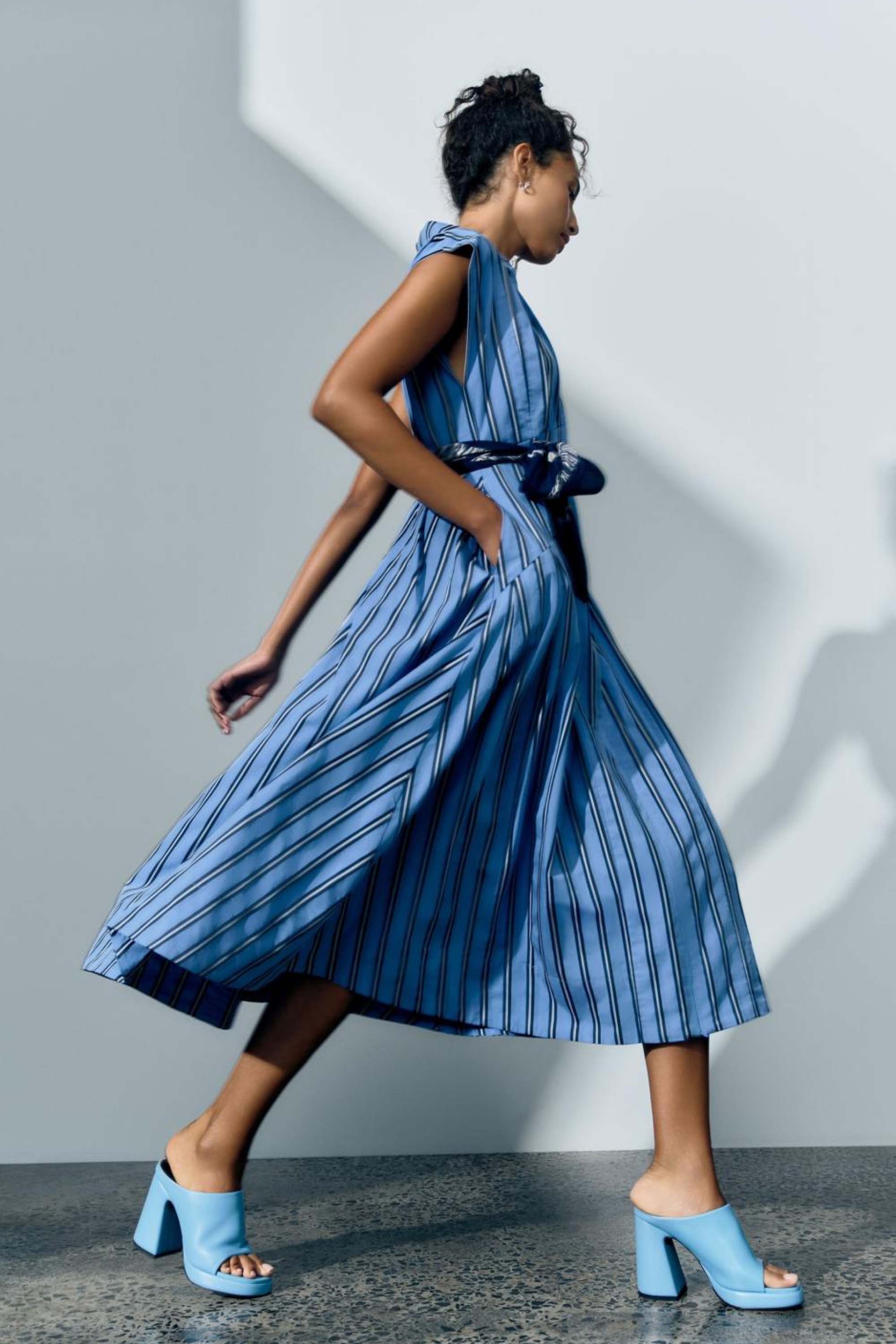 Blaq Gathered Detail Midi Dress in Atlantic and Black Spot Print