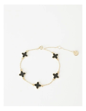 Piper Black Four Leaf Clover Bracelet in Black/Gold