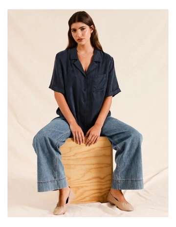 Piper Cupro Short Sleeve Shirt in Navy