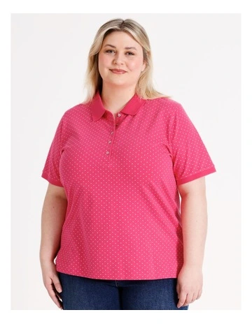 Organic Cotton Stretch Short Sleeve Polo in Hot Pink/White Spot