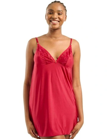 Viscose & Lace Thin Strap Chemise Nightdress in Strawberry