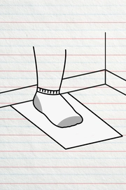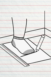 Wearing socks, have your child stand up straight with their heels against the wall.