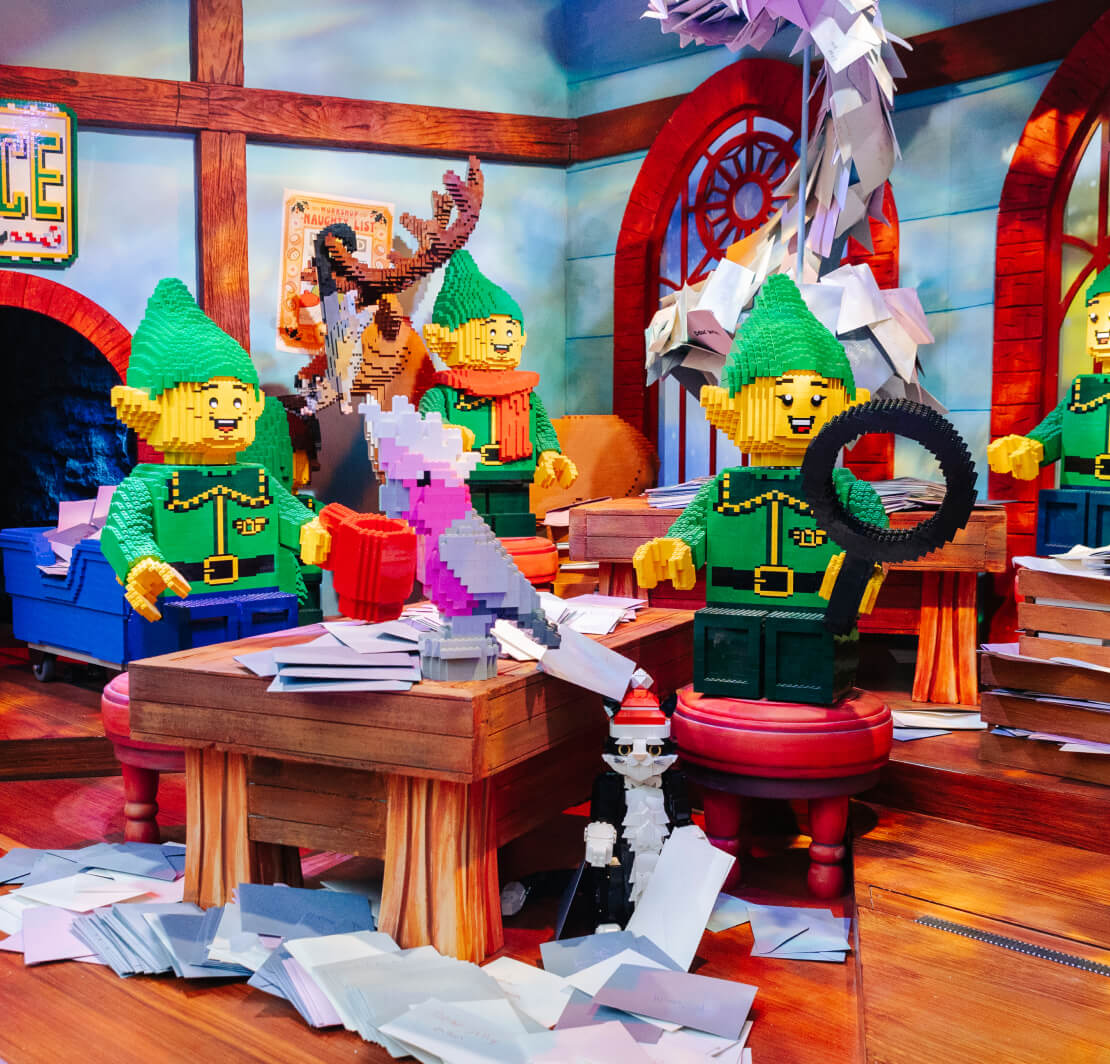 - Animated LEGO® builds including elves painting toys, a Wrap-O-Matic gift machine and Santa’s sleigh