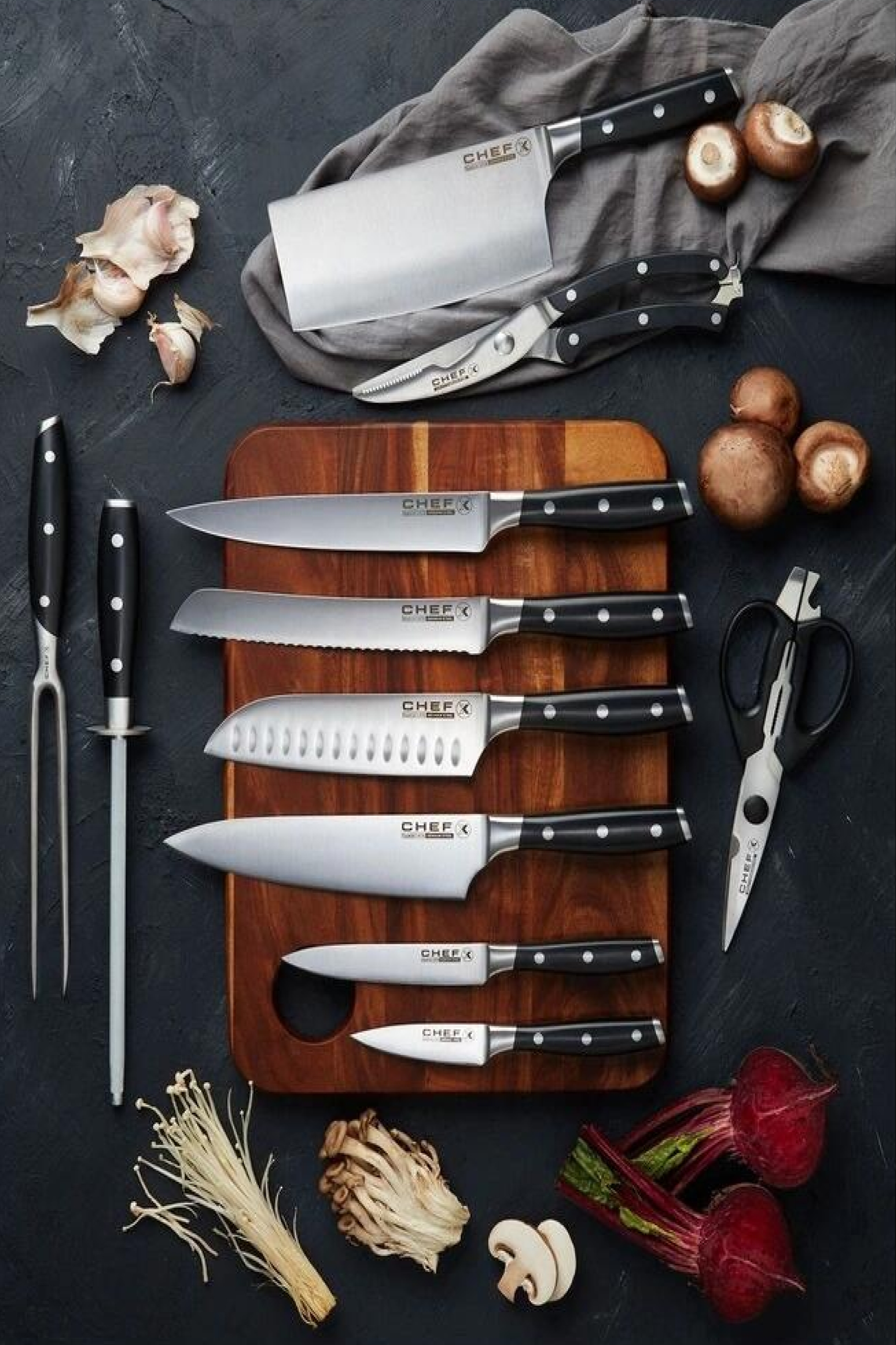 Premium German and Japanese stainless steel makes for superior performance and dishwasher-friendliness.