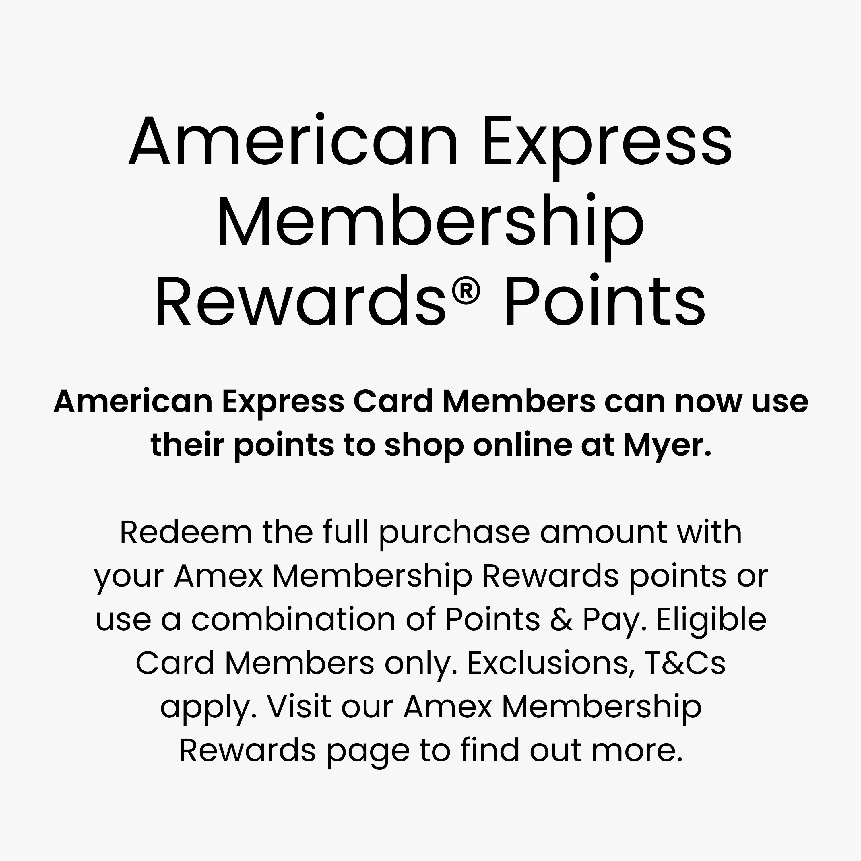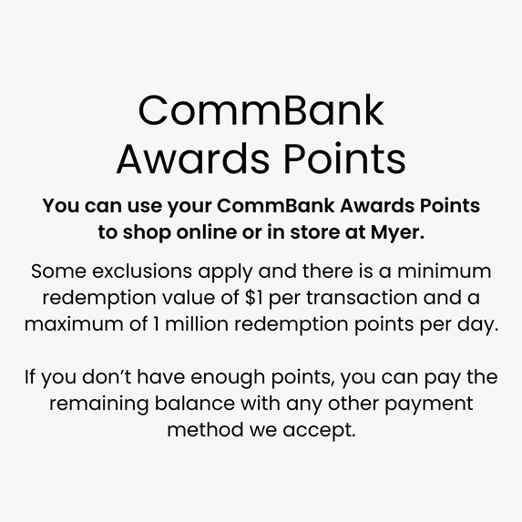 We’re proud to partner with CommBank Awards, American Express Membership Rewards & Velocity Points to bring you Points + Pay payment options with Myer.