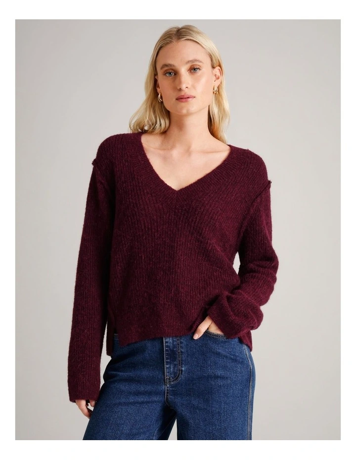 V Neck Lofty Knit in Aubergine