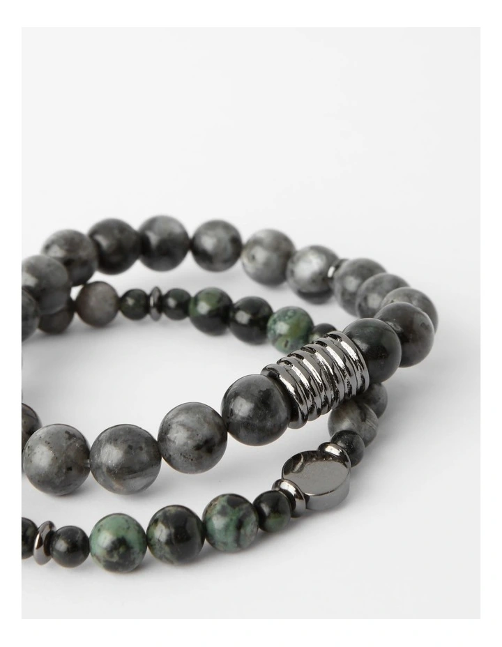 Semi Precious Bracelets 2pk in Black