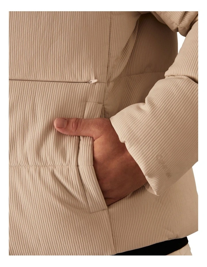 Texture Quilt Puffer Jacket in Strony Beige