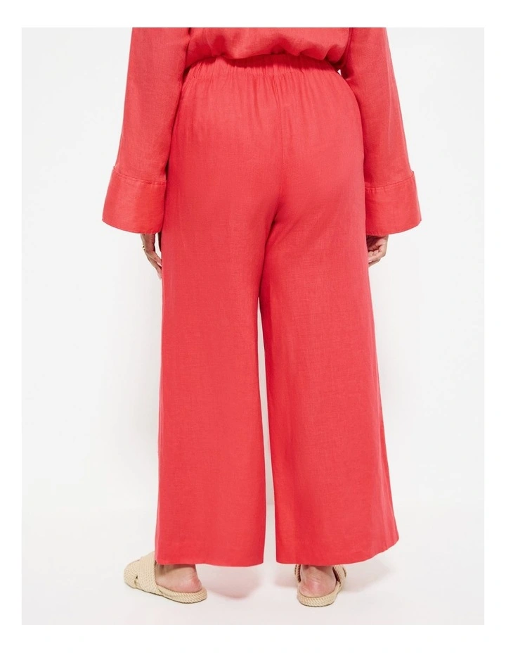 Flat Front Linen Pant in Hibiscus Red