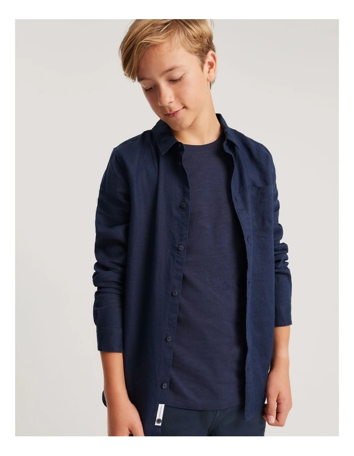 Teen Organically Grown Linen Shirt in Navy
