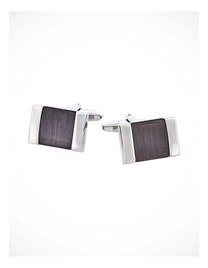Rhodium Plated Cats Eye Square Cufflinks in Grey