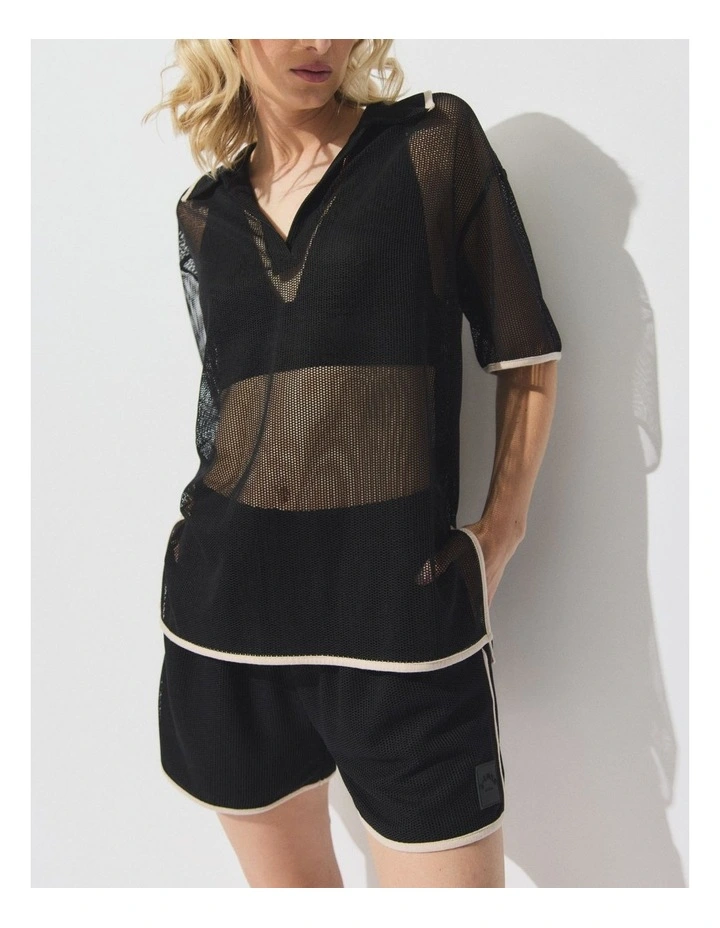 D-Luxe Square Knit Polo Top in Black