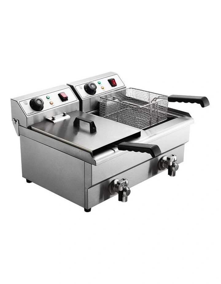 20L Electric Commercial Deep Fryer Double Baskets Oil Taps 6000W