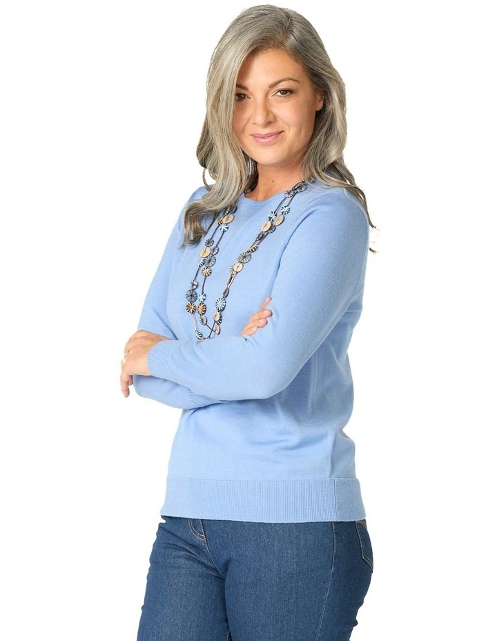 Melanie Merino Wool Crew Neck Sweater in Blue
