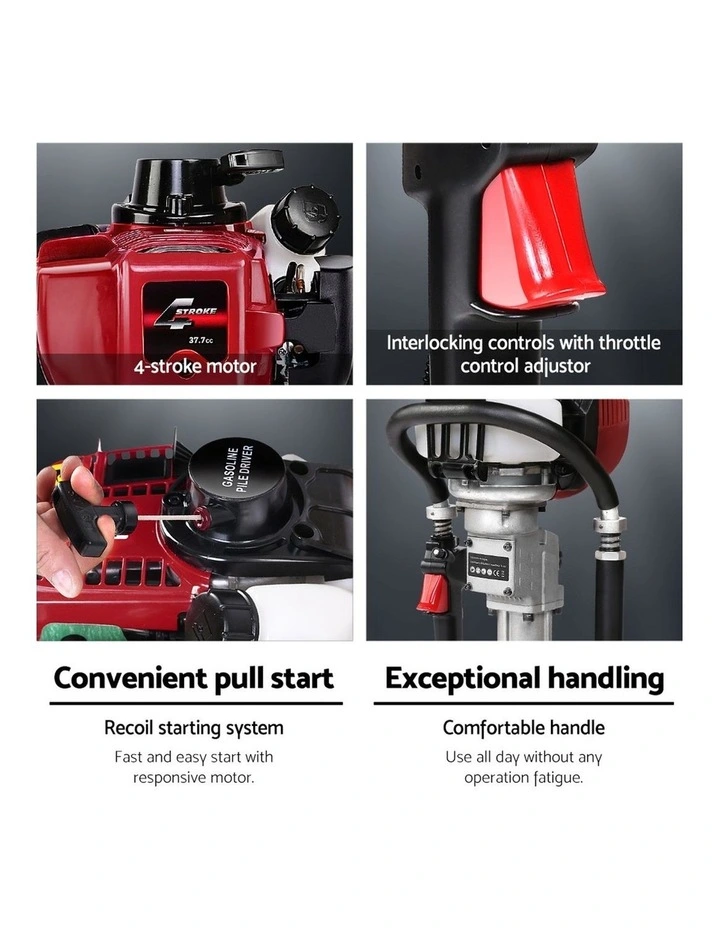 Giantz Petrol Post Driver 38CC 4-Stroke Rammer Red