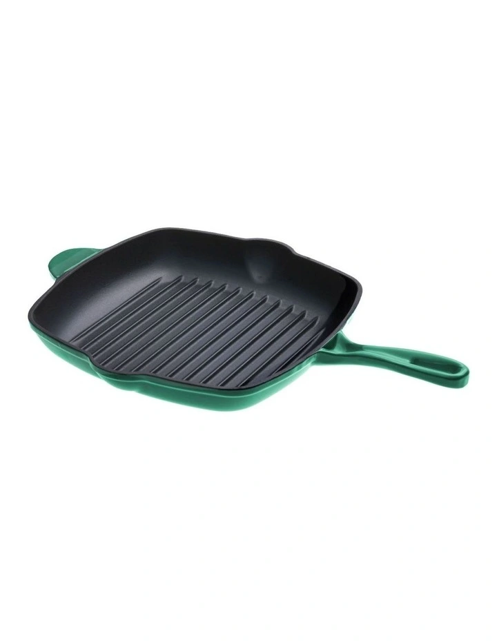 Cast Iron Square Grill Pan 28cm in Eden Green