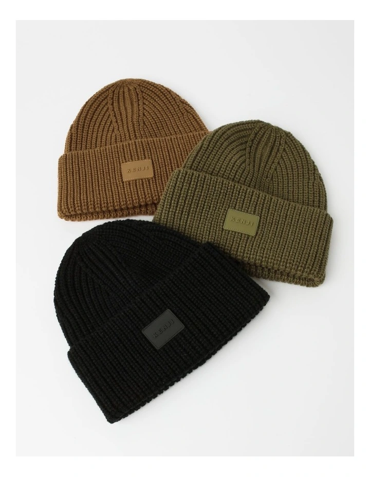 Turn Up Beanie with Rubber Patch in Black