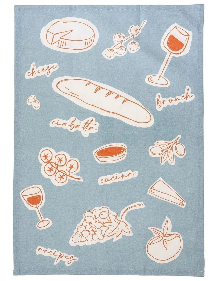 A Long Lunch Kitchen Towel 4 Pack in Pale Blue