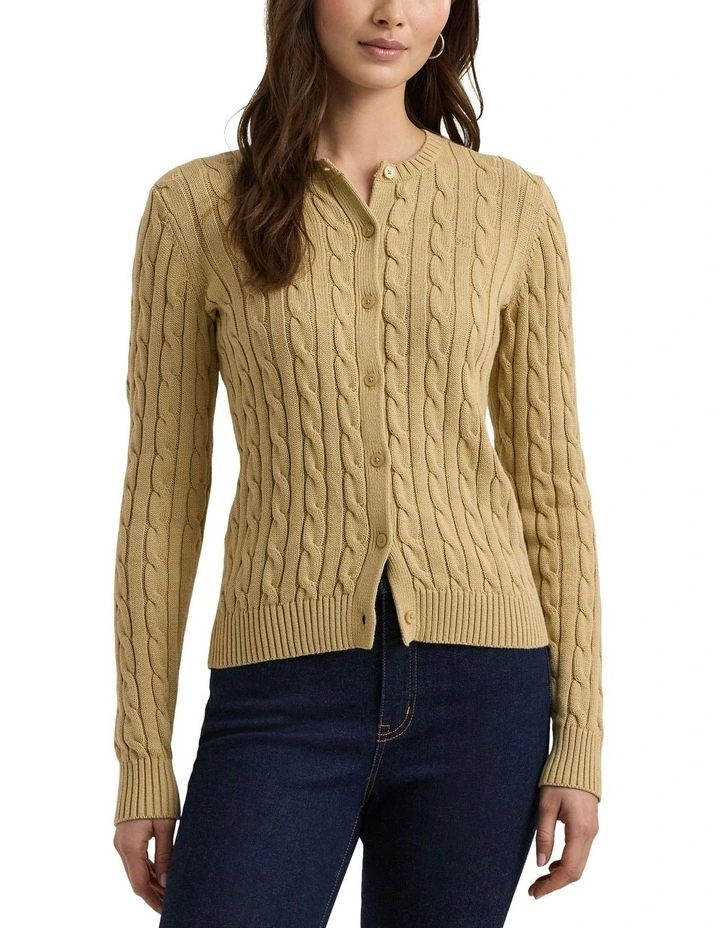 Cable-Knit Cotton Cardigan Sweater in Beige