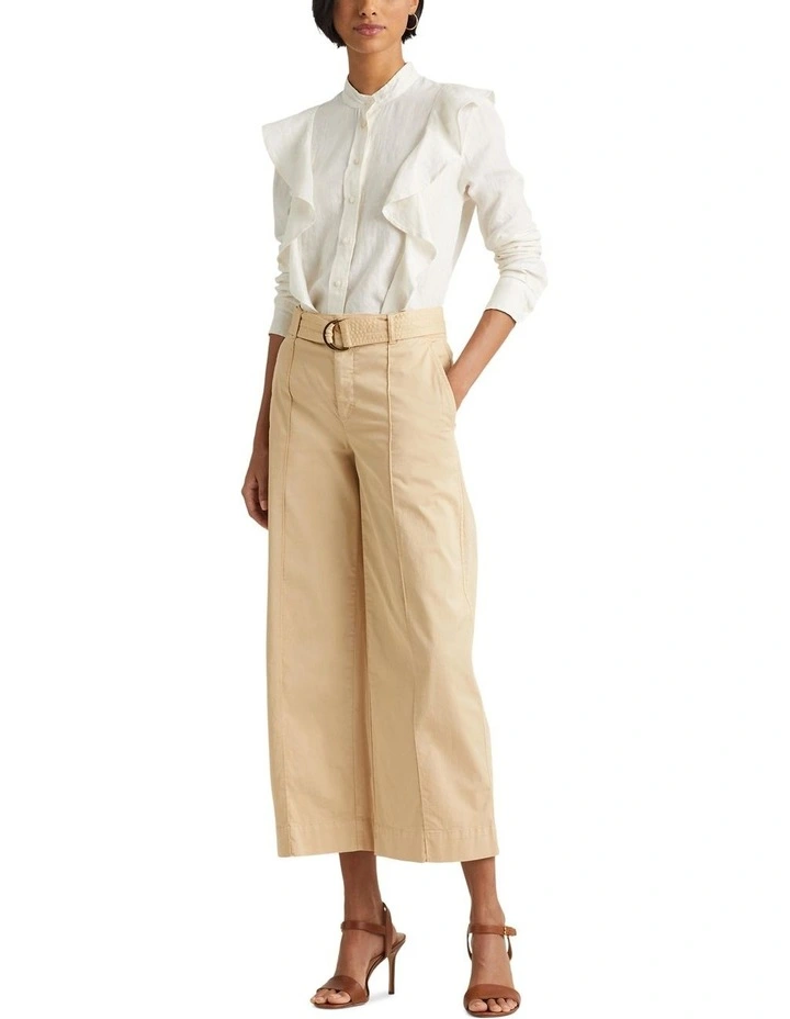 Ruffle-Trim Linen Shirt in Natural