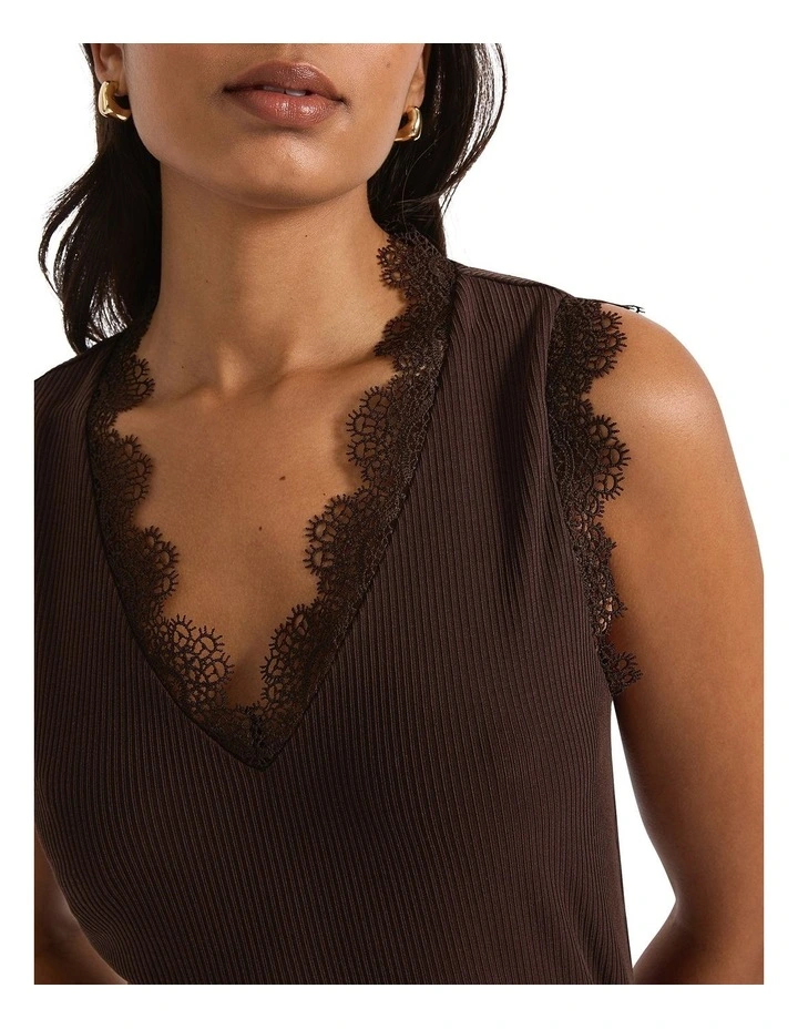 Sadie Lace Trim Tank in Gravel