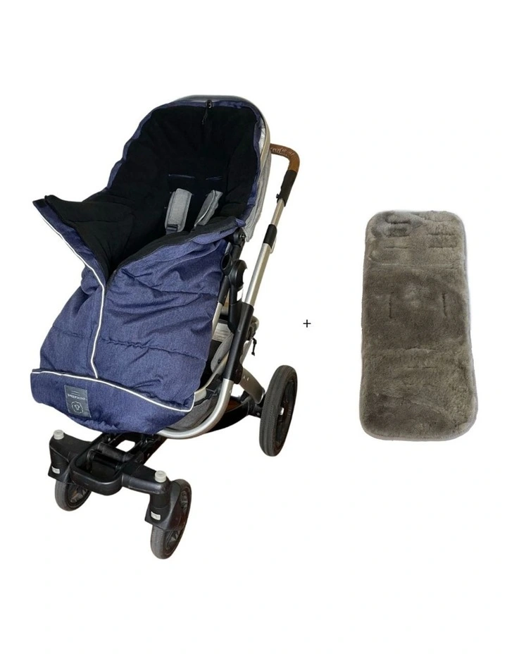 Combi Fleece Footmuff with removable Lambskin Liner in Navy/Grey