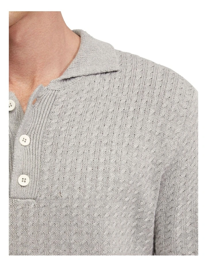 Harrison Cable Knit Polo in Grey