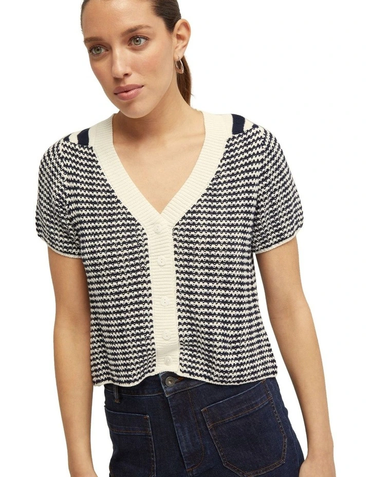 Heidi Cotton Cardigan in Navy/Ivory