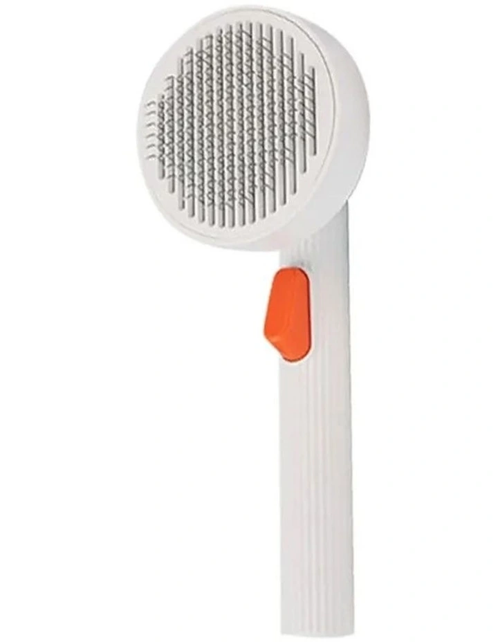 Large Pet Round Grooming Brush 2 With Fur Release Button in White