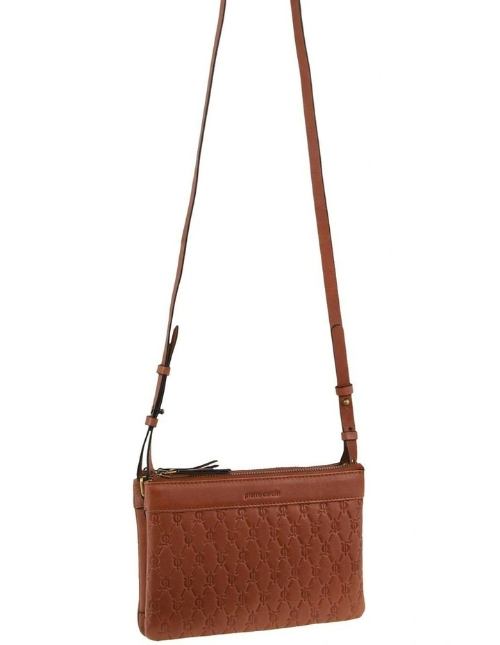 Leather Pleated Design Crossbody Bag in Tan
