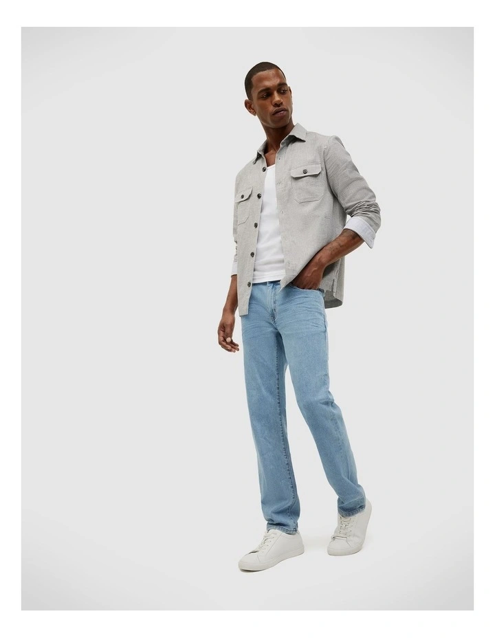 4 pocket Long Sleeve Houndstooth Overshirt in Grey Marle