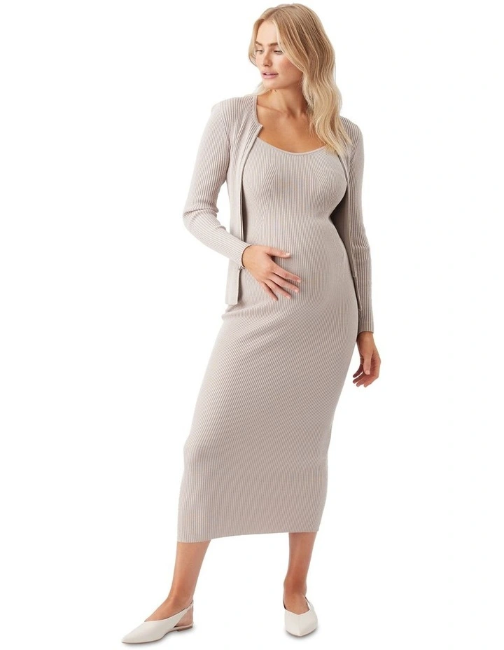 Celine Rib Knit Dress in Stone