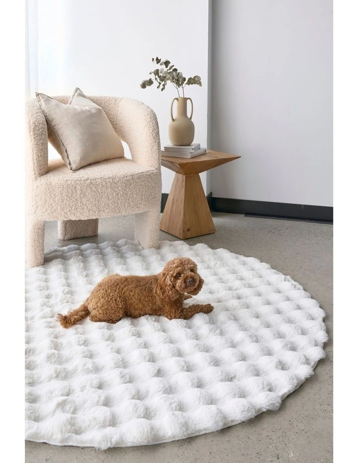 Bubble White Round Machine Washable Rug