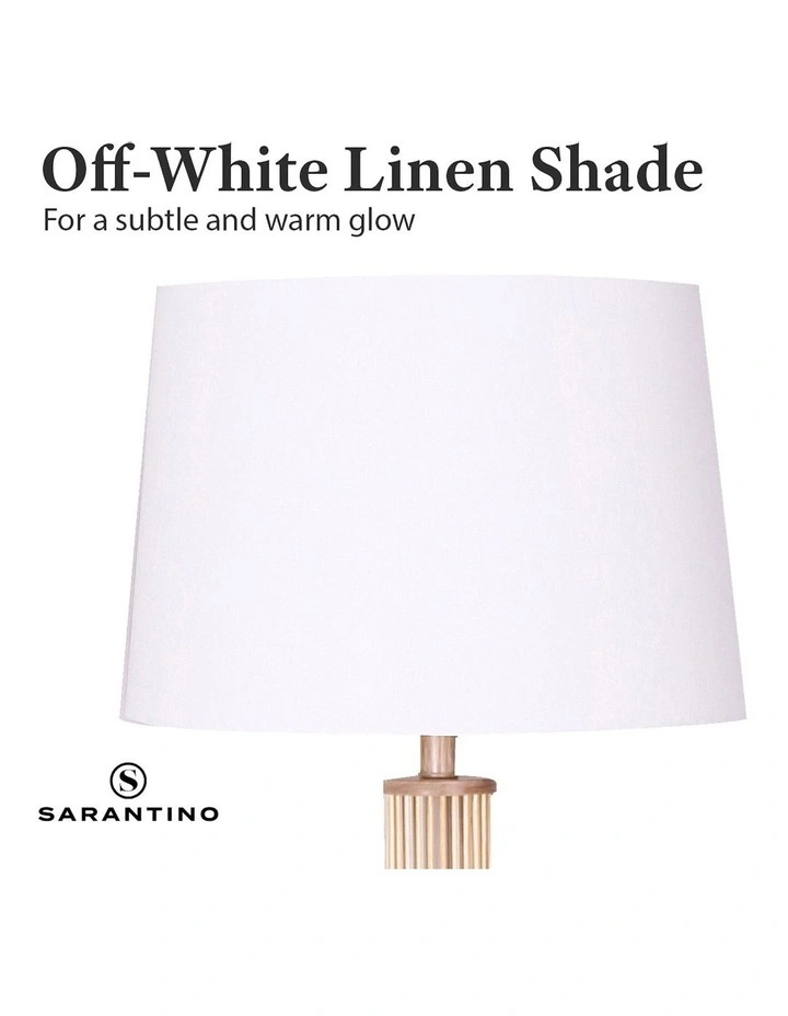 Rattan Floor Lamp with Off-White Linen Shade