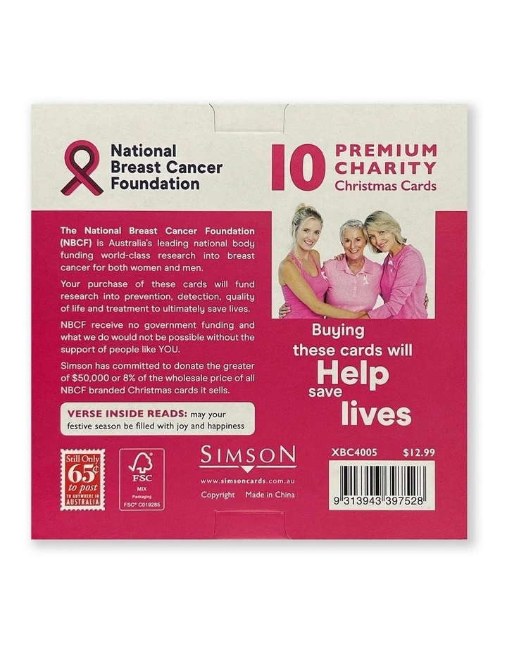 National Breast Cancer Foundation Charity Boxed Christmas cards Robin Joy Design
