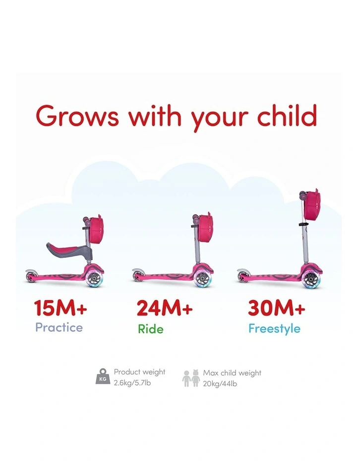 T1 Adjustable 3 in 1 Light Up Scooter 3 Wheel (5 Years) in Pink