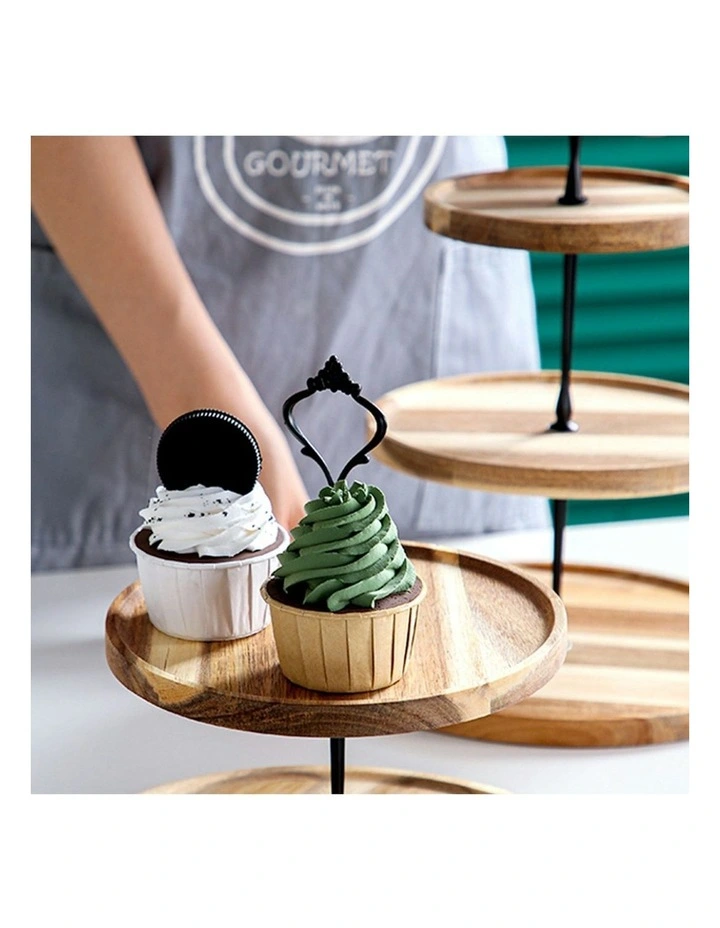 2 Tier Round Wooden Dessert Tray 20cm in Brown