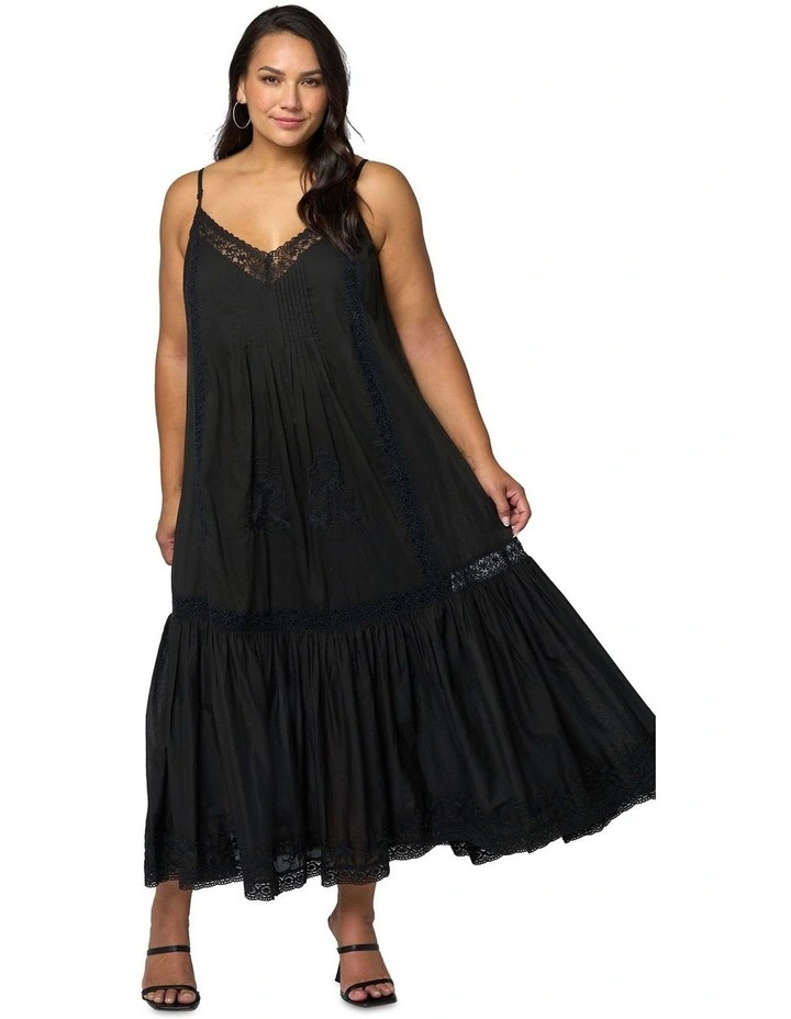 Elizabeth Embroidered Maxi Dress in Black