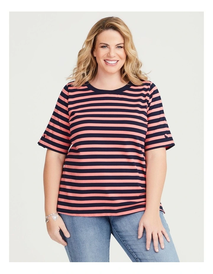 Cotton Stripe Breton Top in Navy/Coral Fusion